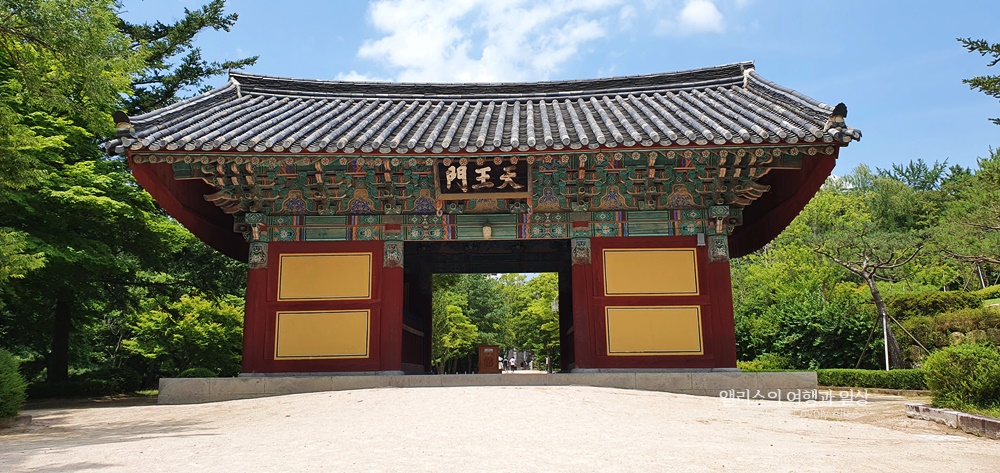 매표소의 일주문(조선시대 다포식 건축양식을 따르고 있는데 다른 사찰에 비해 규모가 크다고.)을 통해 입장한 후 걷다보면 반야연지가 보인다. 나중에 나올 때 반야연지를 돌아보기로 하고. 천왕문으로 향했다. 천왕문은 사천왕천의 동서남북 지역을 관장하는 임무를 맡고 있고 천상의 수문장이라고 한다.