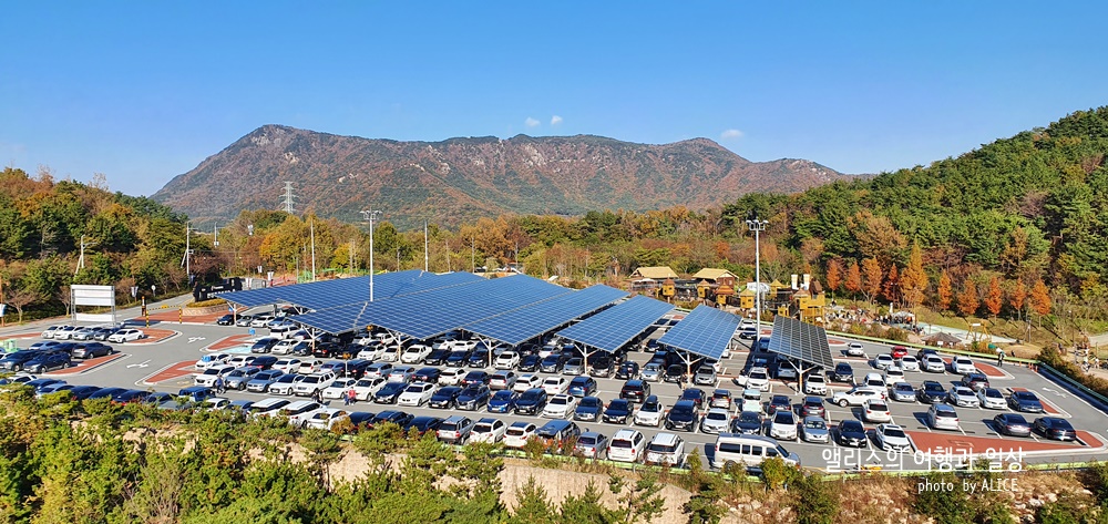 주차장은 야외 주차장으로 굉장히 넓은데, 태양광 패널이 있는 곳 아래에 주차하는 것이 차량을 태양으로부터 보호하는 데 유리하다. 하지만 주차장 전역이 태양광 패널로 가려지는 것은 아니므로 이 부분 참고하자. 주차후 도보로 3분 거리면 김해 가야테마파크 입구에 도착할 수 있다.
