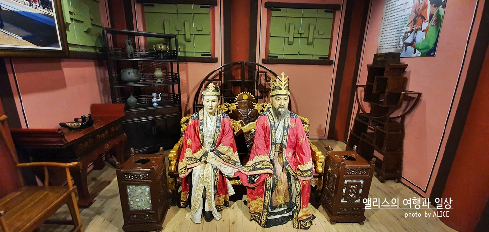 전시실 맞은편으로 가면 김수로 왕 허황후 왕비를 재현한 조형물을 볼 수 있다. 어찌나 진짜 같은지 순간 진짜 사람이 갖춰입고 분장하고 이곶에 앉아있는 것은 아닌가 싶은 착각을 불러일 으킬 정도였다.
