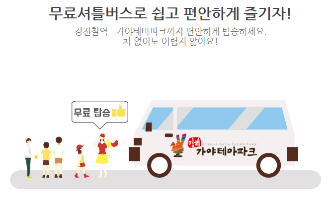 김해시 경전철역에서 김해가야테파마크로 가는 셔틀버스를 무료로 이용할 수 있다.