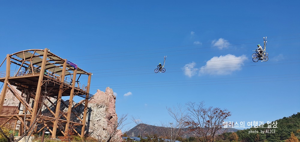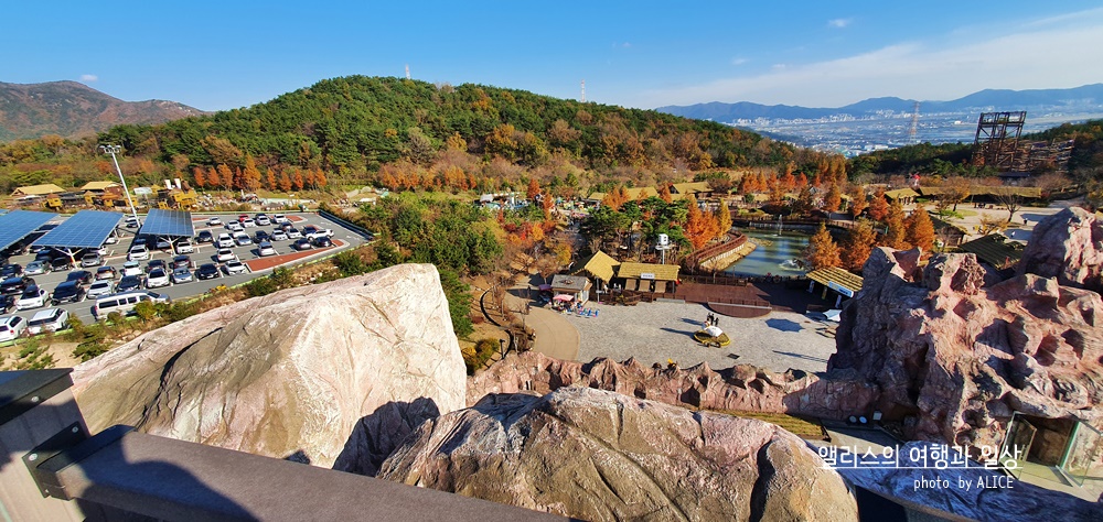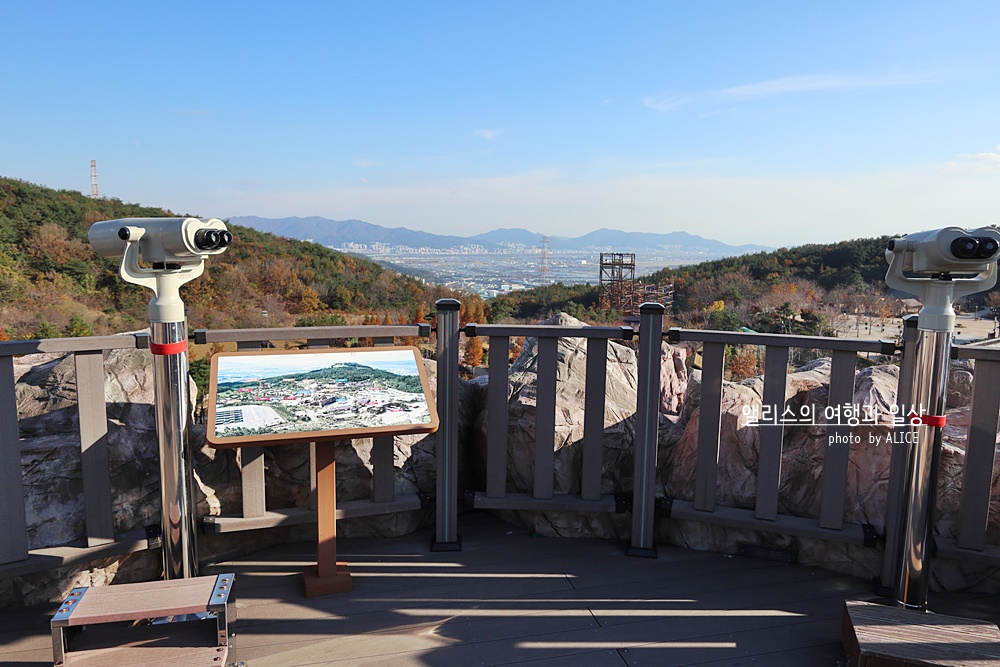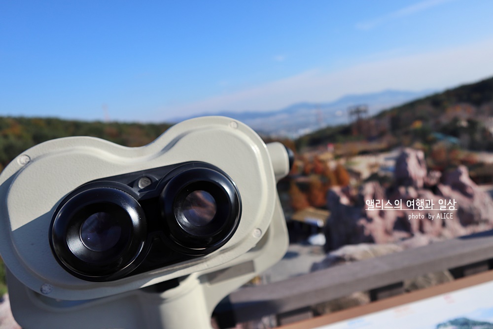올라가는 중에도 은근히 진짜 광산의 느낌을 그대로 잘 표현했구나 싶을정도로 철광산은 웅장했다. 계속해서 걸어올라가니 익사이팅 싸이클 탑승장소가 보였다. 이곳에서 끝이 아니라 이곳에서 더 올라가야 했다. 그렇게 끝까지 전망대까지 올라가니 탁 트인 전경이 눈에 들어왔다. 날 좋은 가을에, 가을 옷을 잘 차려입은 자연속에서 화려한 가야테마파크가 한 눈에 보는 전망대에 오르길 잘했다는 생각이 들었다. 저 멀리 볼 수 있는 망원경도 무료로 사용할 수 있으니 참고하시길!
