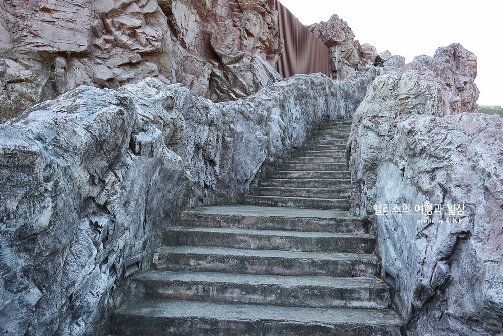 김해 가야테마파크를 한 눈에 볼 수 있는 전망대는 철광산 공연장 위로 올라가야한다. 공연장 정문을 기준으로 오른쪽으로 걸어가면 전망대로 가는 길 표지판을 볼 수 있는데, 이 표지판대로 계단을 계~속 올라가면 전망대로 갈 수 있다. 생각보다 계단이 많으니 체력저질인 나는 이것도 좀 힘들어했다. ^^;;;