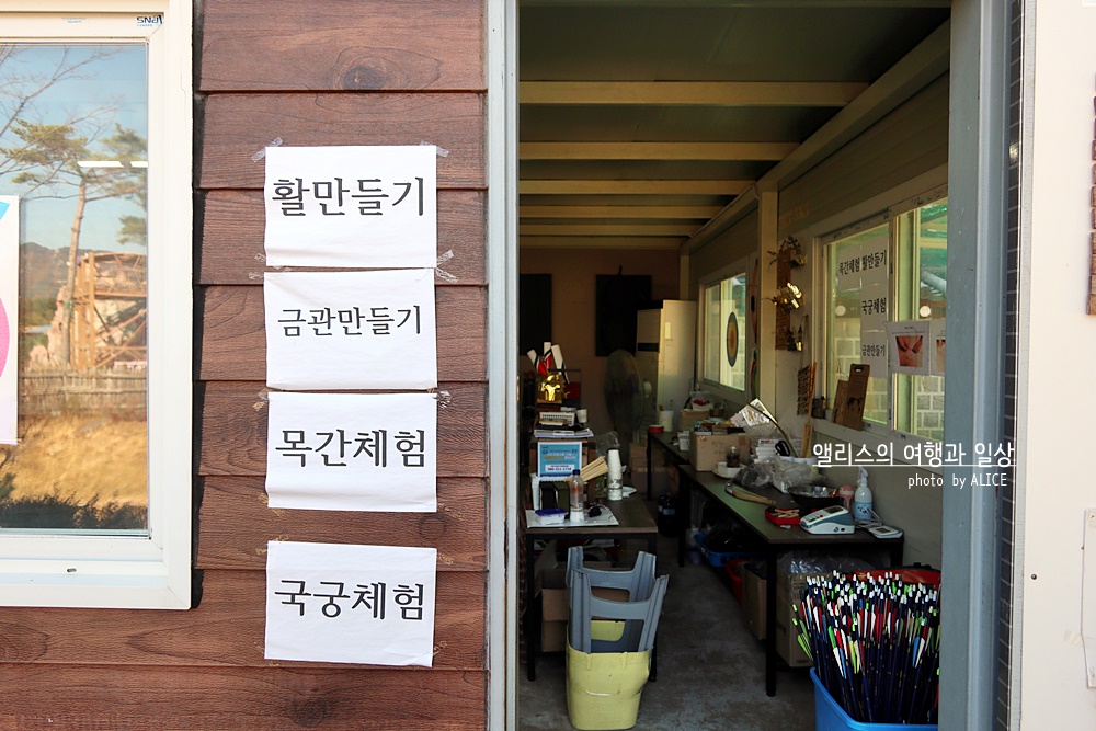 전사체험장으로 향했다. 전사체험장에서는 활만들기, 국궁체험, 왕관만들기, 목간만들기등을 해볼 수 있다. 어린아이들으리면 왕관 만들기를 제일 많이 선택하고 힘이 좋은 어른들은 국궁체험을 직접 해볼 수 있다. 국궁체험은 1인당 5천원으로 유료체험이지만 총 10개의 화살로 10번 활을 쏠 수 있기 때문에 전혀 비싸지 않다.