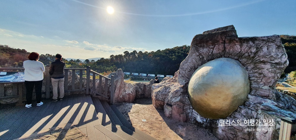 6개의 작은 나라 연맹체로 알려진 가야. 그 중 금관가야가 규모가 가장 컸으며 그 중심에는 김해가 있다. 이야기에 따르면 6개의 알이 하늘에서 내려왔고 그 알 중 먼저태어난 것이 지금 우리에게 잘 알려진 "김수로"왕이라고. 사람이 실제로 알에서 태어났겠냐만은 이러한 시조에 얽힌 이야기는 흥미로움을 자아내는 데에는 큰 역할을 함은 분명하다. 그래서인지, 가야테마파크에 들어서면 알 모양의 조형물부터 볼 수 있다.