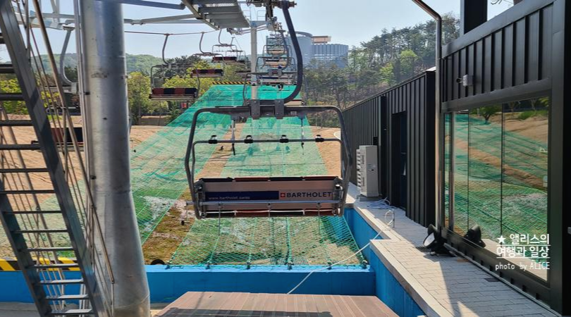 리프트를 타고 루지 출발장소로 향했다. 항상 루지 탑승할 때마다 리프트를 타게 되는데, 그럴 때마다 참 뭐랄까.. 너무 뻥 뚫린 탑승시설에 비해 높이가 워낙 높다 보니 은근히 긴장하게 된다. 그래도 최소한의 안정장치도 있고 발로 안전바를 꽉 누르고 있으니 별일이 없긴 하다만!