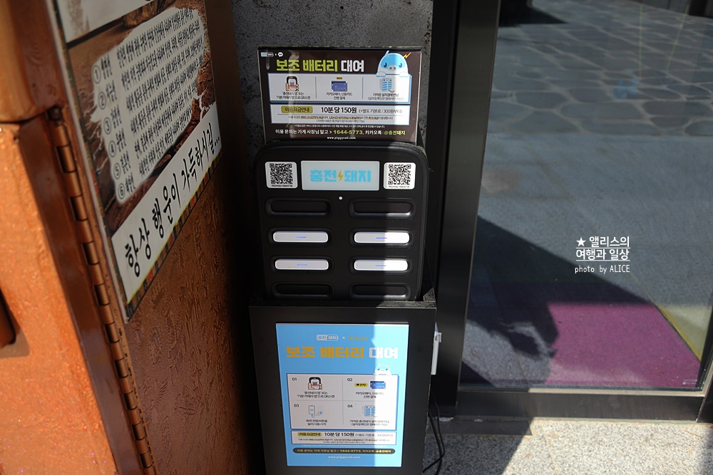 이용할 수 있는 부대시설로는 편의점과 식당이 있어서 편리했다. 나의 경우 사람들이 많이 몰려서 오래 대기하기 싫어서 첫 타임의 루지를 타기 위해서 이동했다. 다만 그 과정에서 내 생각보다 일찍 도착한 터라 아직 경주 루지월드가 오픈하지 않은 상태. 그래서 부대시설 중 오픈한 식당에 들러서 김밥 한 줄 먹고 잠시 쉬고나니 금새 루지월드가 오픈했다. 어차피 짐을 맡겨야 했으니 편의점에 있는 보조 배터리를 대여해서 루지를 타는 동안 충분히 핸드폰도 충전할 수 있었다.