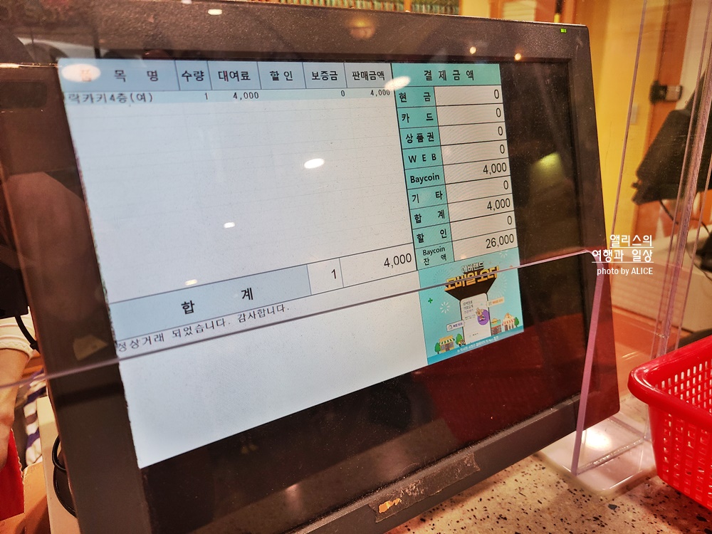 베이코인은 결제하면 영수증에 잔액을 확인할 수 있다.