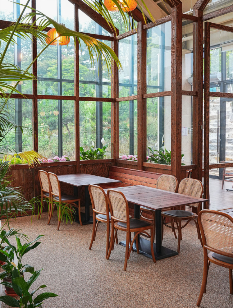 한떄 가드닝에 푹 빠진 적이 있었다. 막상 할 엄두는 안 나더라도 그 가드닝이 주는 특유의 생기와 에너지가 좋아서 핀터레스트에서 참 많이도 자료를 찾아보곤 했다. 그때 느꼈던 영국의 가드닝은 마치 카페드 첼시에서 다시 만난 기분! 딱 떨어지는 대칭 구조의 조경이야 유럽의 시그니처이겠지만 어딘가 모르게 높은 천장과 초록의 싱그러움 그러면서 대부분의 가두는 나무 소재로 된 것과 건물 기둥 역시 나무로 된 소재. 사실 유럽의 가드닝이라고 봐도 무방하겠지만 나는 그저 느낌상 영국 같았다. 이름도 첼시잖아!