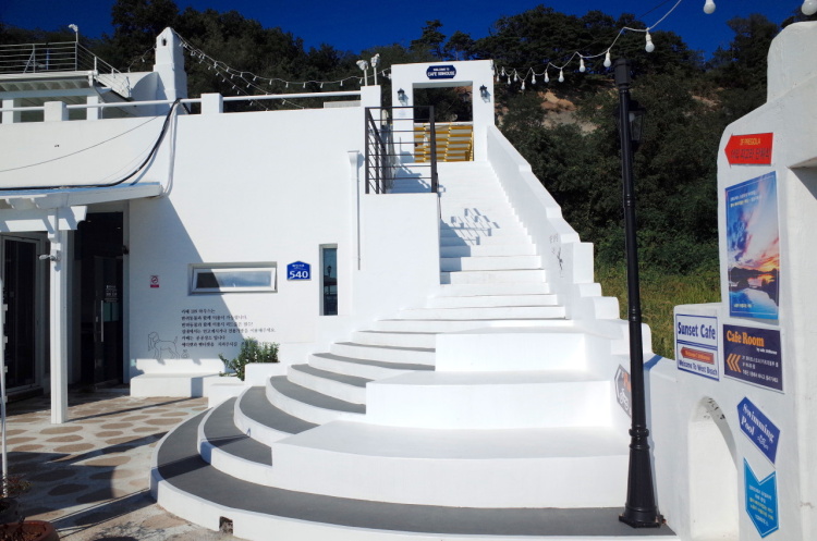 강화도 바다 안개와 아름다운 노을을 볼 수 있는 카페 109 하우스는 누가 봐도 그리스 산토리니 정도 되는 것 같다. 하얀색과 파란색을 주요 색상으로 설정해서 디자인한 카페 외관과 내부 모습은 요리조리 뜯어봐도 산토리니 어디쯤이다. 카페 규모가 큰 만큼 키즈 & 펫 입장이 가능하니 참고하자.