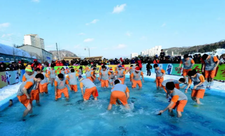 한 겨울에 반팔, 반바지를 입고 맨손 송어잡기도 한다.